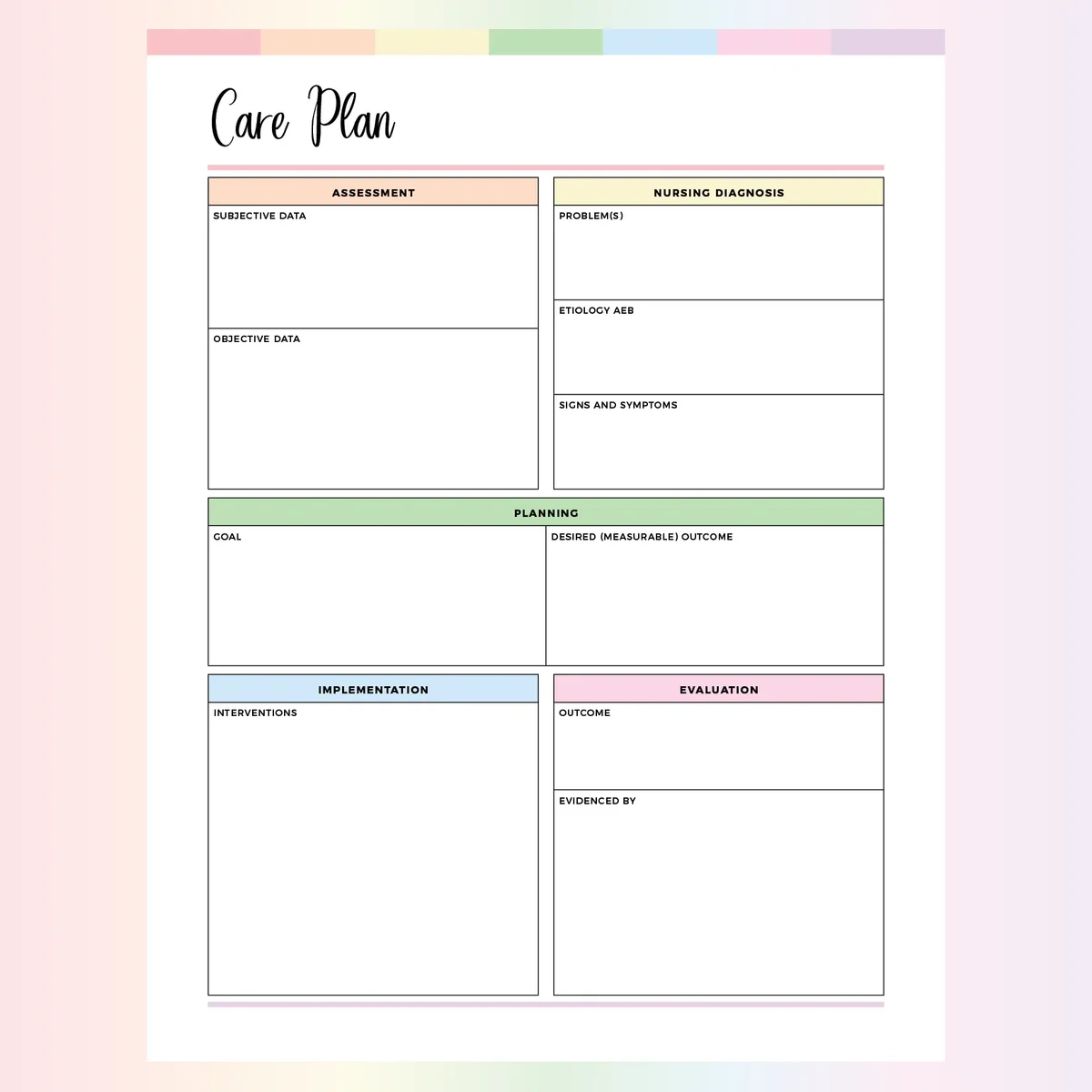 Free Printable Blank Nursing Care Plan Templates PDF Included